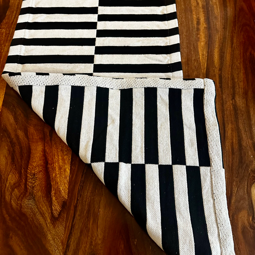 White and Black Knitted pattern Cotton Table Mat (13 X 70 Inch)